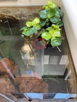 赤丸で囲んだところに赤ちゃんがいるのですが小さい小さいメダカちゃんで