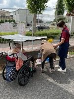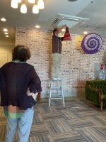 通りかかった入居者様が現場監督のように「もう少し右の方がいいと思うよ」とアドバイス☺