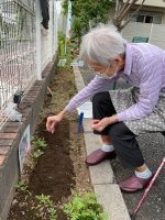 種まき後に【あめふり】の歌をうたい「大きくなってねー」とエールを送る方