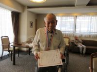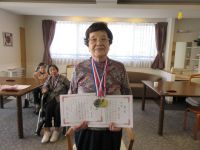1月のシーハーツ川口選手権の表彰式を行いました。どことなく自慢顔を見せてくれました。