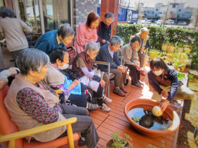 これからは私だけでなく、ご入居者様にもメダカのお世話をしていただいて、少しでも外に出る習慣をつけてほしいです!