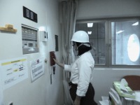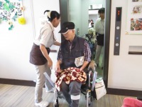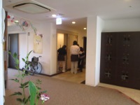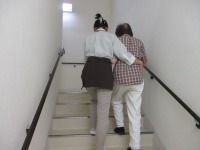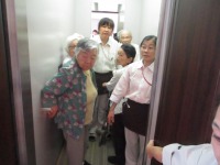 エレベータの点検後、皆様を2階ラウンジへ、階段を上がるご入居者様にも協力頂き、
