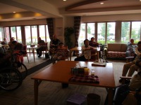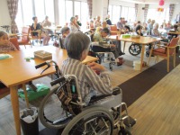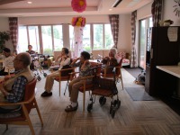 10時より音楽療法の先生が来館。楽器等を使って楽しく行っております。