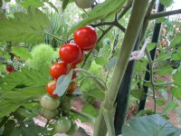 胡瓜が7本、茄子を5本、ミニトマトが20個でした。✌