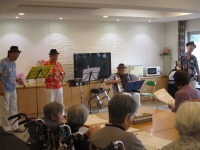 アコーディオンやウクレレ等の演奏に合わせ、約1時間程でしたが、皆で楽しむことが出来ました。(^^♪