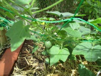 ミニートマトが赤くなり、○○胡瓜(名前忘れました。すみません)が、1cm程になり、食べごろを迎えました。