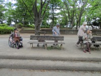 公園に着くと皆様自由行動、ベンチで休まれる方がいらっしゃれば、車椅子自操される方、公園の外を一回りされる方、公園の中を回る方等々、解放された気分を味わって頂きたく、必ず決まりとしてさせて頂いております。§^。^§