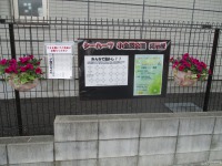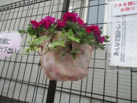 掲示板の横に飾ってあるハンギングバスケットの入れ物が古くなった為、カバーを掛けて見ました。(^^♪