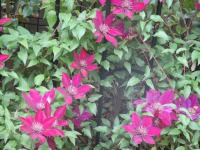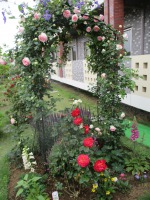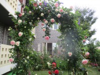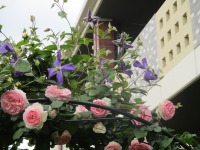 薔薇が先に咲き始め、後からクレマチスが登場。