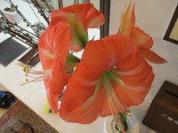 施設事務所カウンターに、入居者様よりお預かりした「アマリリス」を飾りましたぁ。事務所に来られる来館者様、入居者様が「この大きな花はなぁ~に?」とみなさんに聞かれ、「アマリリスですよぉ」と答えると「そうなの~へぇ~」と花をマジマジ鑑賞していました。