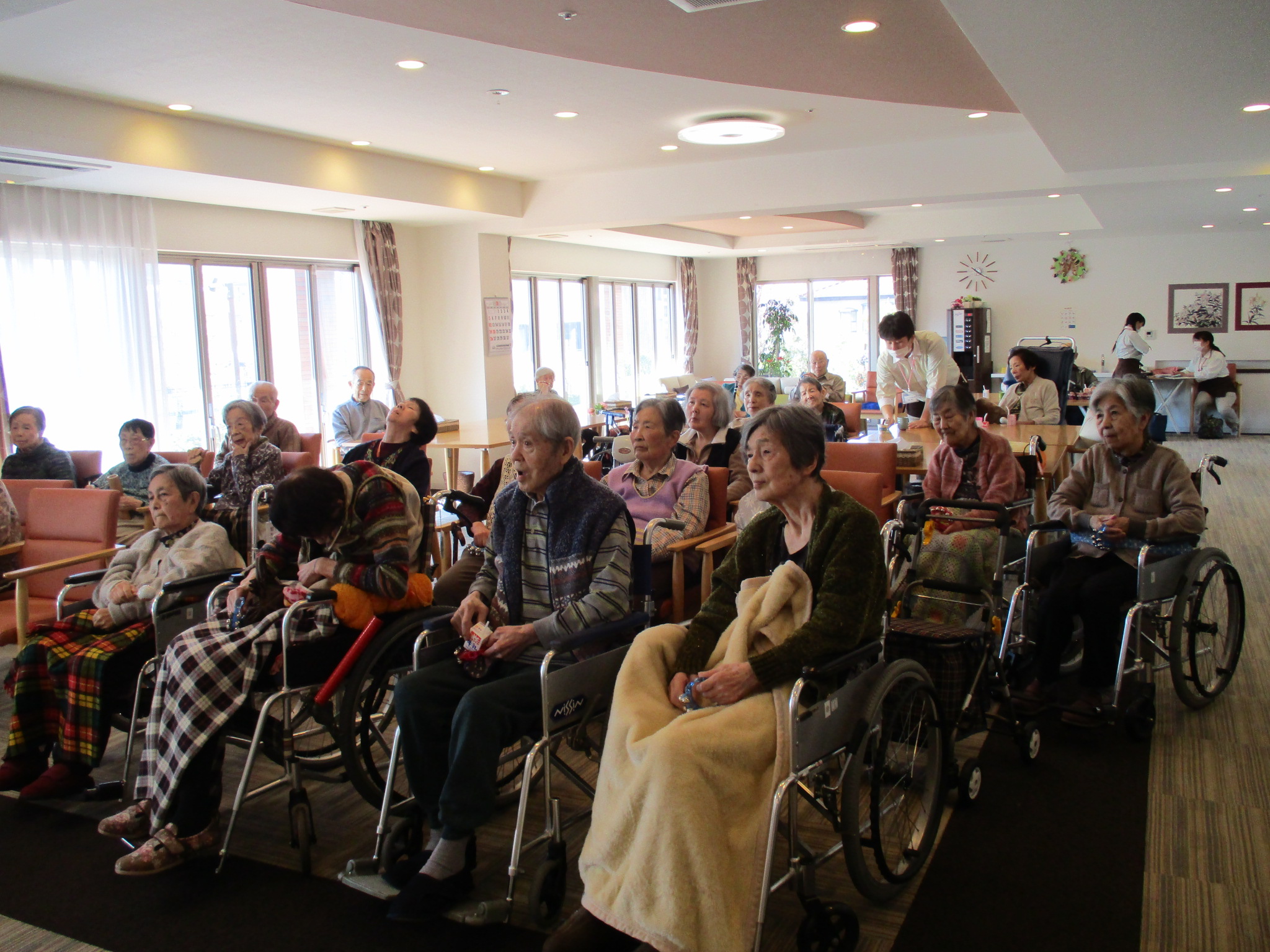いつも大勢の入居者の皆さんで賑わっている音楽療法ですが、