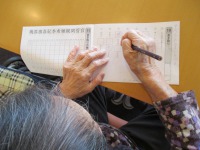 本日のレクは脳トレー、皆様真剣に取り組んでおられました。黙々と行っておりラウンジは静かでした。参加人数はいつもより少なかったですが、活気は見られております。
