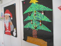 本日のレクはクリスマス飾り作り。ですが・・・靴下作りは人気がなく、ツリー作りに皆様集まっておられ、職員苦笑い・・・でもしょうがないですね~ツリー作りに専念。