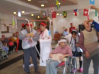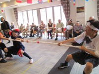 年に1回行われている運動会、ご入居者様も職員も気合十分。負けたくない一心で、白組の方が作ってくださった、赤組のゼッケンにはバラの花が・・・「○○様、凄いもの作りましたね。しかも赤組の分まで・・・優しい。バラの花綺麗~」「うん、赤組はバラの花で・・・バラバラになって・・・(#^.^#)」「ドホホホ・・・(^_^;)」