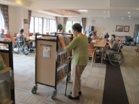 松戸市移動図書館が来ました。(隔週金曜日)「何を読もうかな~」と目を輝かせながら悩んでいらっしゃる為、「どんな本をお探しでしょうか?」と質問→「内緒(*^。^*)~」との返答^_^;。暫く楽しそうに選んでおられました。借りた本の題名は?)^o^(
