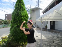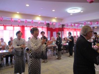 去年を思い出しながら、朝のテント張り、簡単に出来ると思いきや、なんのなんの・・・なかなか手順が思い出せず、四苦八苦。皆で意見を出し合ってやっとの思いで、完成。わ~い。画像1が、完成した後のポーズ(施設代表としてケアリーダーが・・・)入居者様が書いてくださった看板を飾り、10時30分から体操から始め輪投げ等で大盛り上がりでした。去年は輪投げを外で行いましたが、今年は館内で初めての試み、これがこれが又、大盛り上がりで入居者様の笑顔がとても素敵でした。ボランディア二組招待、盆踊りとよさこいソーラン、迫力満点、可愛い~・・・皆様口閉めて!涎が・・・)^o^(。楽しい一日でしたが、後の片づけは本当に簡単で、あっという間にテントの片づけが出来ました。(*^。^*)