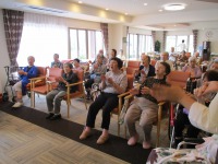 毎週水曜日は音楽療法の日、皆さん楽しそうにそして真剣に行ってましたが・・・)^o^(ちょっと失礼!強引にカメラを向けさせて頂くと、綺麗に撮ってね~(*^。^*)と、お顔を向けて下さいました。(^O^)ありがとうございます。
