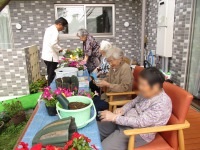 ご入居者と一緒にペチュニアやインパチェンスなど夏の花に衣替えをしました。