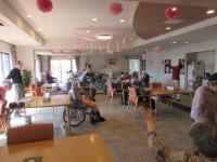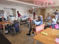 1F・2Fラウンジ天井にも🌸桜飾りを