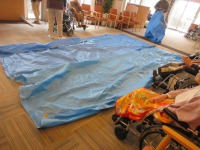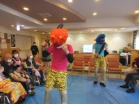 赤鬼・青鬼が現れ一斉に豆を撒いて
