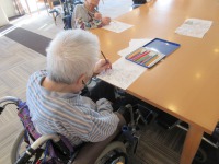 入居者様真剣に色を塗っておられました。