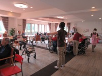 入居者様本日も体操に参加いただいております。