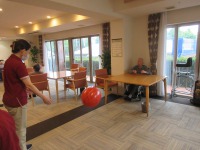 ジェンガを真剣に取り組む方やスタッフとボールで