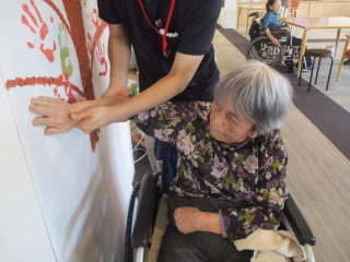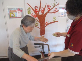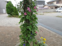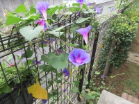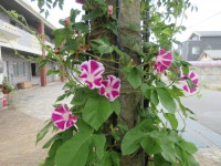 施設の朝顔綺麗に咲きました。(*^-^*)