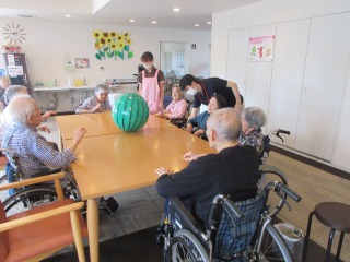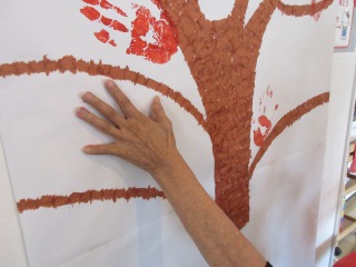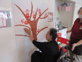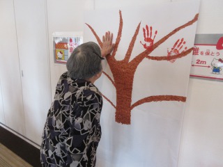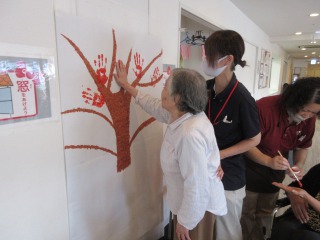 手の平に色を付けてペタペタと!ヾ(≧▽≦)ノ
