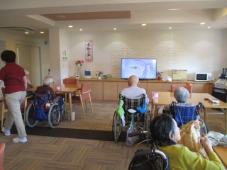 本日のレクリエーションはTVで脳トレ