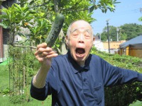きゅうり収穫は📷カメラ向けると、とったど~お!って