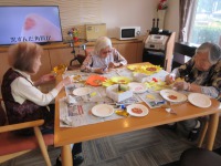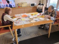 午後のレクリエーションは紙皿を使用して