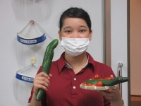 うちの可愛いスタッフに朝取り野菜収穫した物を