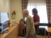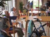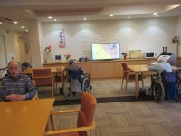 入居者様だけでなくスタッフにもマイク🎤を向け