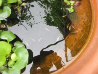 梅雨の晴れ間に中庭のお花とメダカさんを