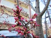 敷地内にある、早咲きの緋寒桜の蕾がどんどん