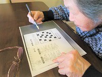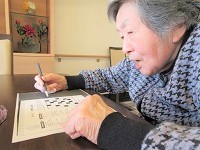 脳トレの問題の途中で、テレビに見入ってるT様。