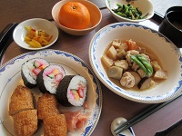 お昼ごはんは、食べやすくカットされた恵方巻でした~!