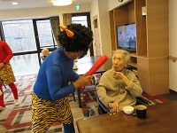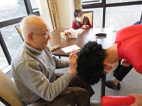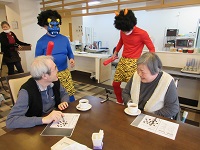 お茶を飲んでいる入居者様達のもとへ。
