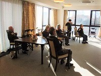 オリジナル体操をDVDを流して、今日も柔軟性を高めて
