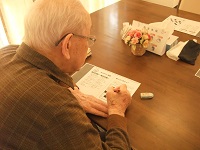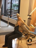今日のリハビリ時間は、N様と一緒にラップの芯を使った柔軟体操。