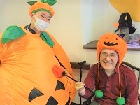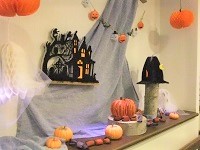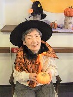明日は入居者様達と、この可愛らしいハロウィンのディスプレイ前で
