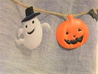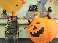 魔女の帽子やステッキ、かぼちゃの被り物などを用意しました。