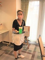 各フロアのラウンジを回り、カウンターで何やら作り始めています。