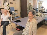 足首に軽い棒を乗せて、上げ下げを行ったり
