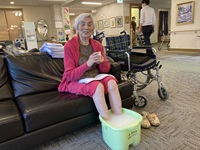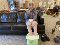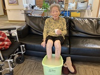 甘酒を飲みながら、いい匂いの入浴剤足浴を行いました。