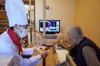 まずは1階の利用者様のお部屋に出張スイーツバイキングに行ってきました。