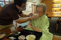準備に取り掛かっている佐藤施設長と南波介護士。