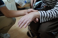 鍼灸治療を導入し、徳田さん(作業療法士)によるリハビリを行い、