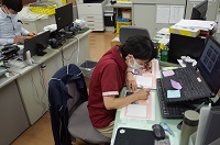 頑張って書いてますよー という雰囲気が伝わるように石川サブに写真を撮ってもらいました(笑)
